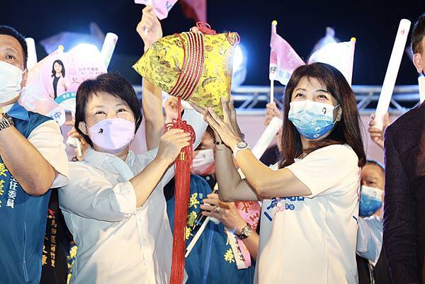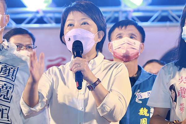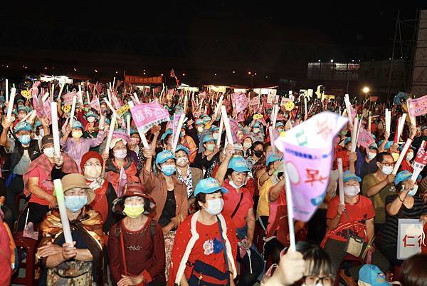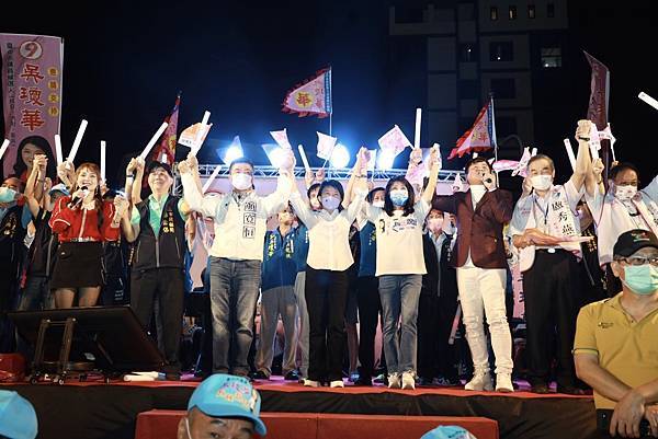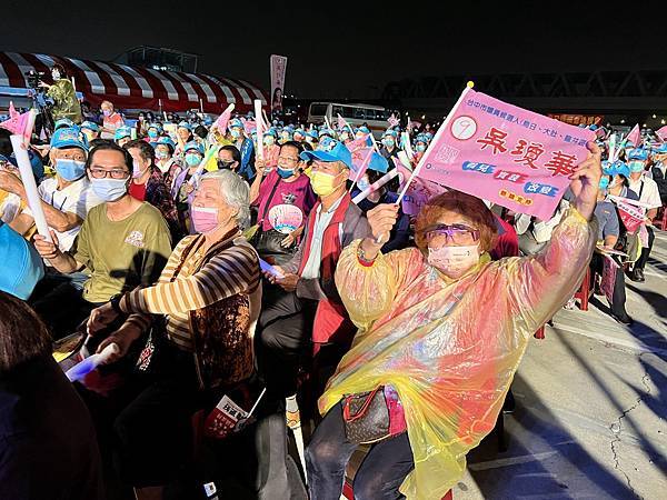選戰倒數4天,全力催票的台中市長盧秀燕今(20)晚參加「吳瓊華議員感恩音樂晚會」,現場超過兩千位鄉親,為盧秀燕高喊「凍蒜」,晚會現場飄下雨絲,但現場嘉賓無人離開,絲毫不受影響,氣勢高昂,持續揮舞旗幟、高喊凍蒜!