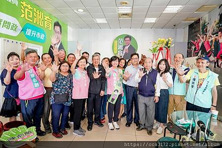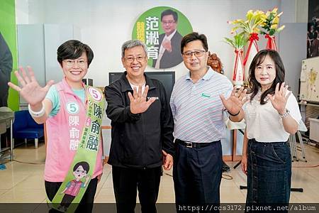 前副總統陳建仁,與北區候選人陳俞融來服務處座談與稍作休息,並與熱情的支持者合影