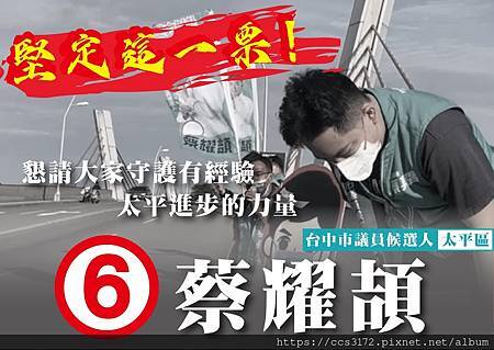 拜託您 #堅定這一票 ,11/26 #出門投票,全力支持6⃣️號蔡耀頡✨,懇請大家當耀頡的分身一起拉票、固票,用選票顧好當選邊緣的耀頡,不要讓耀頡遺憾落選🙇♀️🙇♀️
