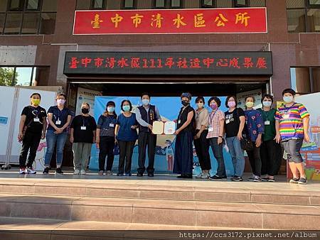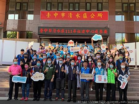 臺中市清水區公所於111年11月27日(星期日)舉辦「臺中市清水區111年社造中心成果展」活動,蔡區長慶生致詞感謝臺中市政府新聞局鄭照新局長代表市長盧秀燕、文化局副局長施純福蒞臨指導,本次活動除了邀請今年入選臺中市政府文化局甄選的3個社區營造點外,更廣邀其他社區、單位及社造個人提案共同參與今天的社造成果發表,場面熱絡。