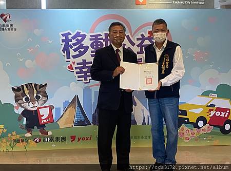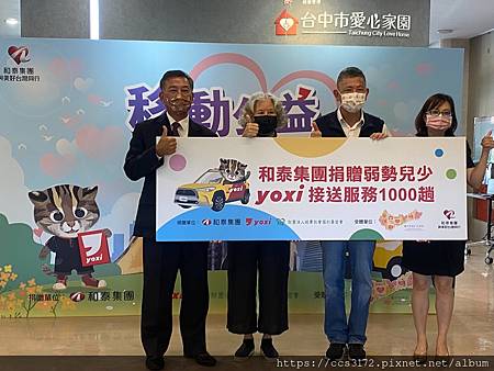 財團法人純青基金會捐贈和泰集團50萬元,提供1,000趟yoxi車隊免費接送服務,載送台中市早期療育弱勢兒少就醫、就學及社工特殊勤務等。台中市政府社會局長彭懷真今(28)日代表受贈,感謝純青基金會與和泰集團看見弱勢兒少需求,讓孩子們在就醫、就學路上更輕鬆便利。