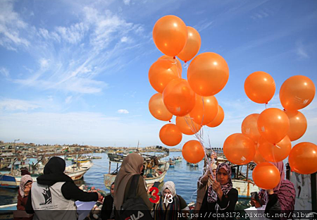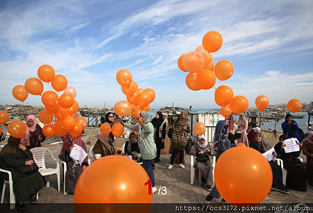 当地时间2022年11月27日,加沙城,巴勒斯坦妇女在海港边参加集会,呼吁反对针对女性的暴力。