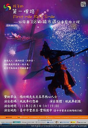 此次贊助者楊欣熾先生因為一次在廣播中,聽到關於368兒童藝術工程的演出內容專訪,非常認同紙風車10多年來免費演戲給全國各地兒童的努力,因此希望透過自己的一點力量,回饋給自己的家鄉豐原區。此場原定108年父親80歲生日之際捐款演出,雖然因疫情影響延至今年(111),但對於父親及家鄉的感情並不會因疫情而改變,堅持在解封之際即安排演出給家鄉的孩子,希望讓豐原的孩子們,有一個演出豐富、親子同樂的愉快夜晚,也藉由此場演出可以撫慰家鄉孩子因疫情而受影響的心情及生活。
