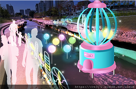 另外,市府在柳川打造華麗水舞燈光秀2.0「愛如潮水」,突破自我,水舞燈光秀再升級,閃爍七彩光芒的河水灑落在柳川之中;柳川還有「心動扭糖機」等大型燈飾、拍照熱點「緊緊相依」,以及互動式的「心琴交響曲」可透過踩踏琴鍵,使噴泉隨著音符搖曳舞動;綠川則高掛「心願燈籠」,象徵市民的祈福願望;「暖心到融化」粉色雪人陪大家漫步在水岸景觀,還有搭配台中購物節設計的閃亮衣架燈飾與絢爛耶誕樹,包準「心動必買」。