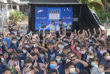 理事長趙文豪也特別感謝參與學校的協助,目前每場演出持續遵守校園防疫規範,播映前也會向小朋友們叮嚀「勤洗手、戴口罩」等防疫措施,並讓觀賞的學童保持適當社交距離,他感謝台中市政府的協助,行動電影院再次前進台中校園,將影視教育扎根。