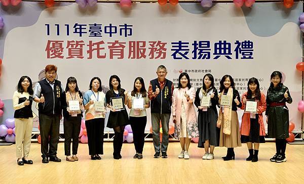 一起守護我們的寶貝!台中市政府社會局今(3)日舉辦「111年台中市優質托育服務表揚典禮」,由社會局長彭懷真頒獎表揚20位優秀的居家托育人員與120家托嬰中心,感謝所有托育人員用心照顧嬰幼兒,努力守護每一個國家幼苗。