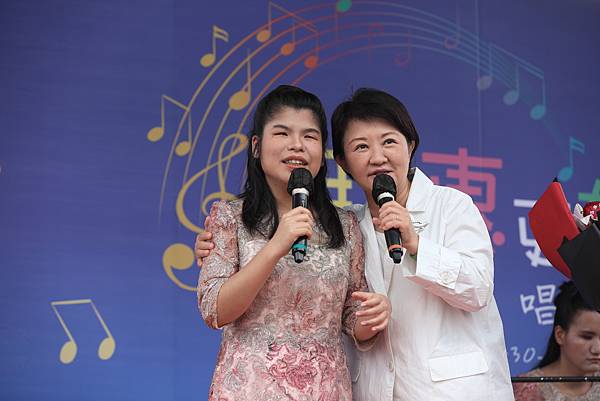 今(3)日是國際身心障礙者日,新東陽股份有限公司在清水服務區,舉辦一場溫馨的演唱會,為視多障女孩許舒閔舉辦演場會圓夢。市長盧秀燕特別到場獻花為舒閔喝采,含淚聆聽她美好動人的歌聲。盧市長說,舒閔雖是視多障女孩,可是她勇敢、不放棄、努力的精神,反而帶給社會光明,期盼舒閔繼續演唱,與更多人分享她的歌曲故事。