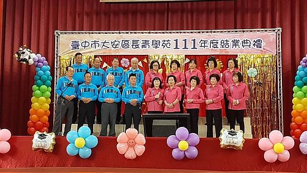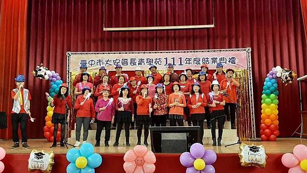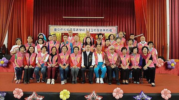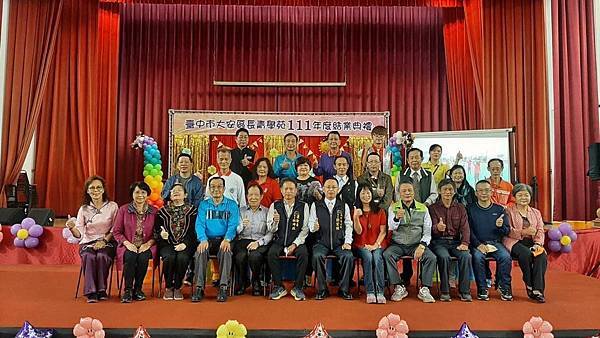大安區公所12月4日於大安國小辦理111年大安區長青學苑結業典禮暨成果發表會,活動由本區許宏綺區長主持,並邀請臺中市政府社會局彭懷真局長、運動局林科長、各級民意代表、各里里長、各社區發展協會理事長及地方仕紳等一同與會,共襄盛舉,活動場面溫馨熱鬧,肯定阿公阿嬤的學習精神,落實終身學習。