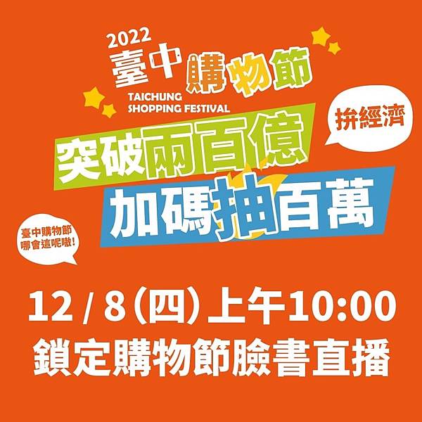 經發局提醒,購物節活動將持續至12月24日,還沒中獎的民眾,一定要把握活動期間到台中消費,並透過台中購物節APP登錄發票或合作店家收據,消費金額每累計滿500元即可獲得1個抽獎序號,合作店家的登錄金額還享三倍累計,也就是消費滿167元就可以獲得1個抽獎序號,消費越多,中獎機會越大,更多台中購物節資訊,可至官網(https://fun.taichung.gov.tw/)查詢,或於每日9時至18時撥打活動客服專線04-23896533。